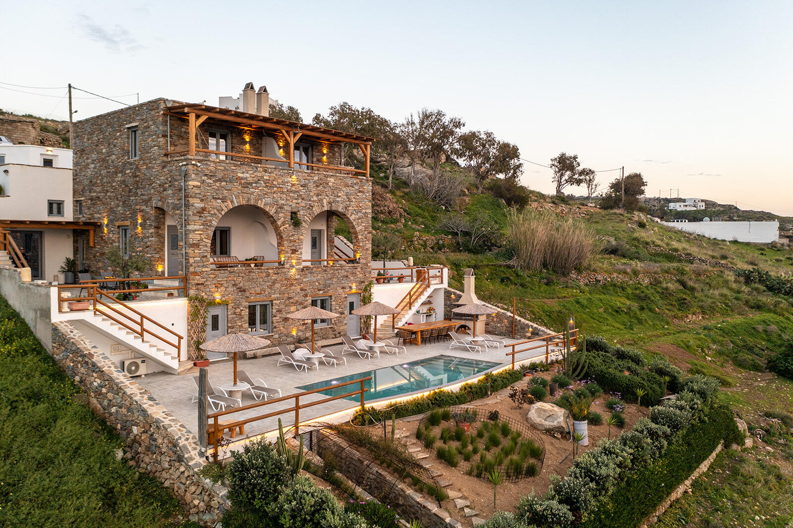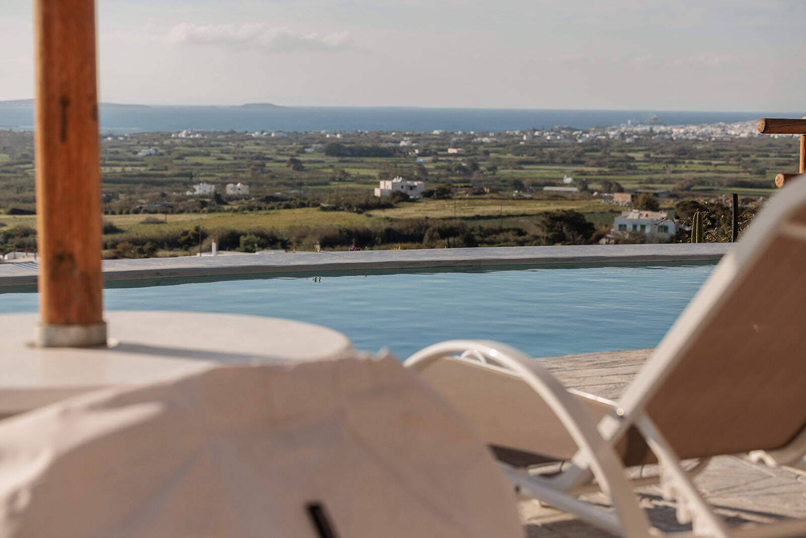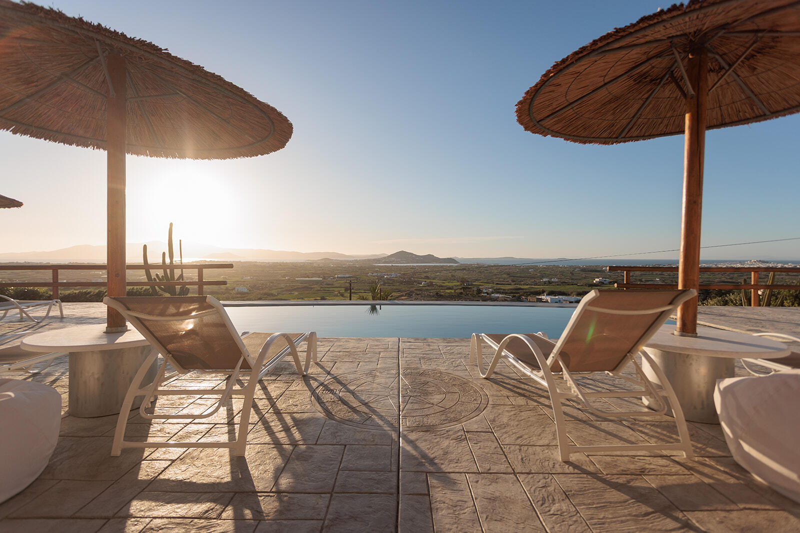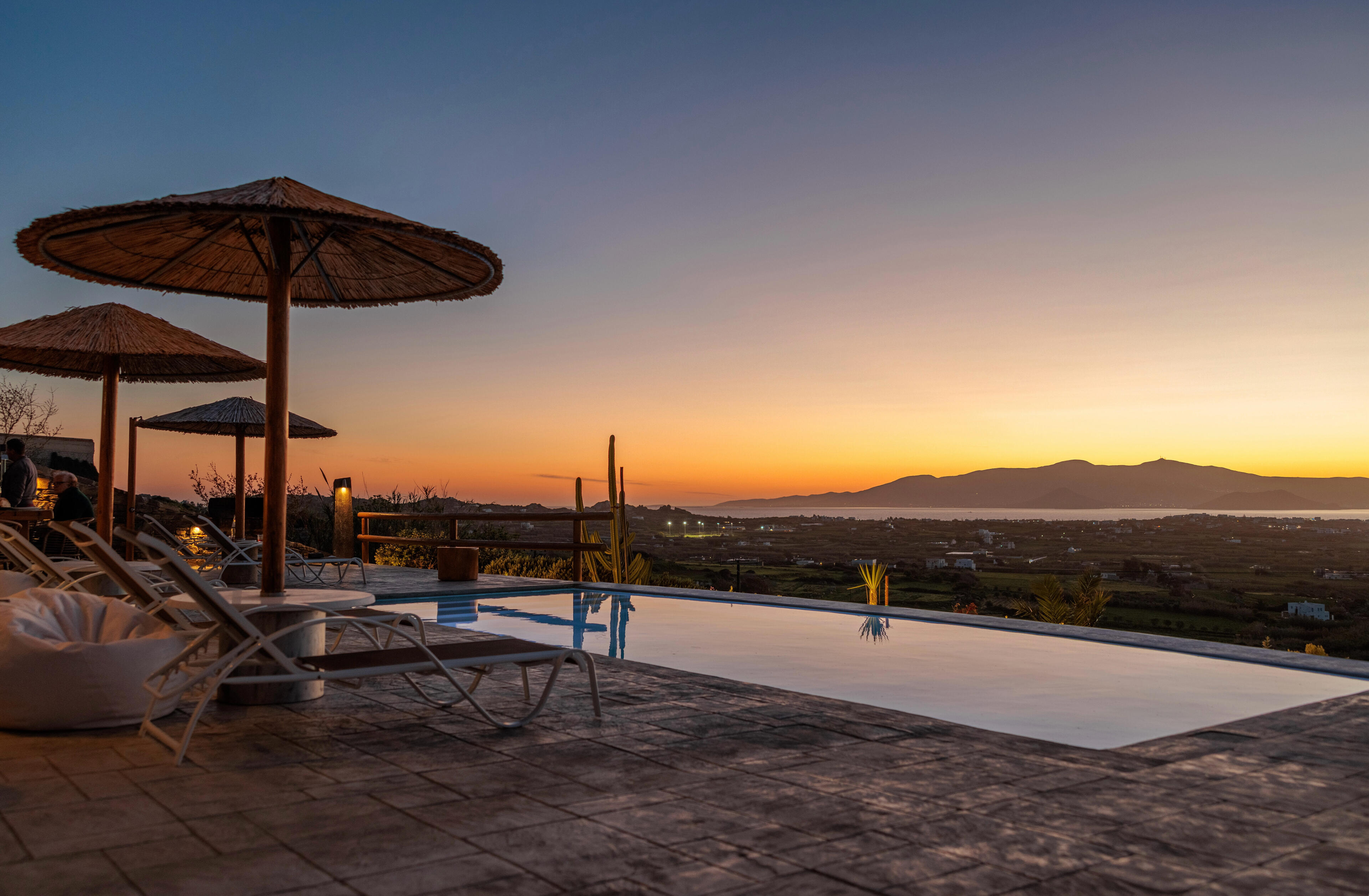 It can sleep a family of four, the spacious living room and the specially designed L shape couch can sleep comfortably even two adults when the big decorative pillows are removed. Located at the pool level it offers immediate access to the terrace and the pool, offering unrestricted panoramic views by just opening one door.