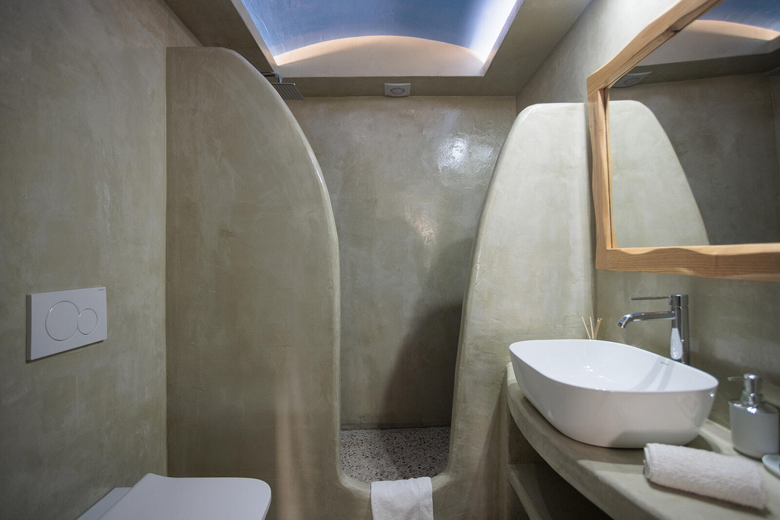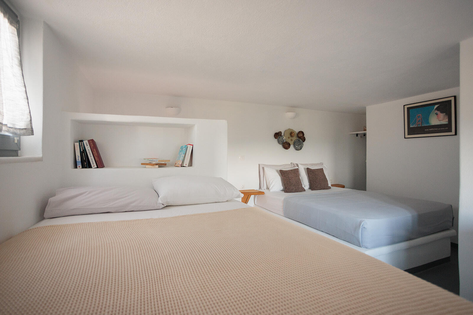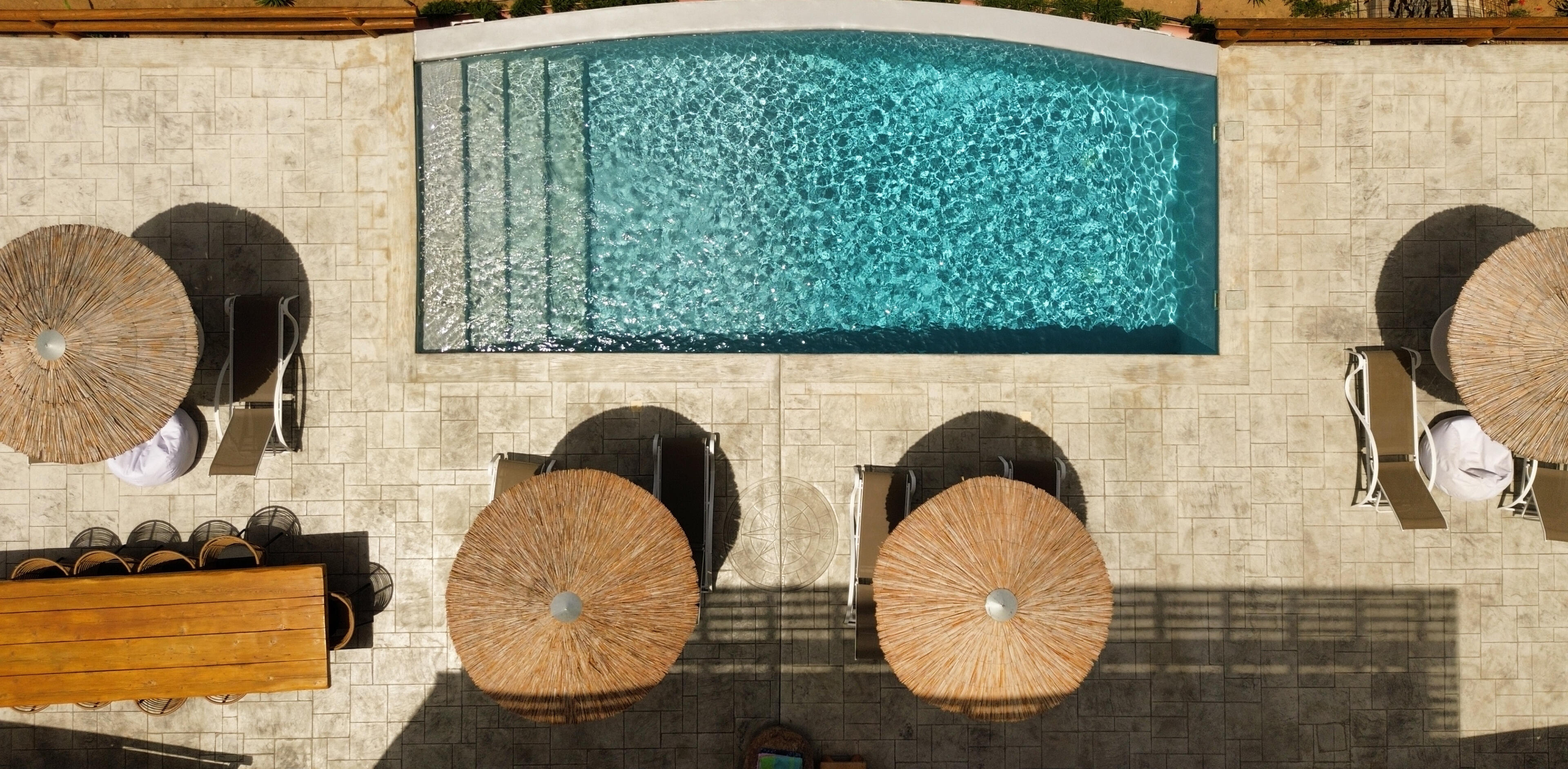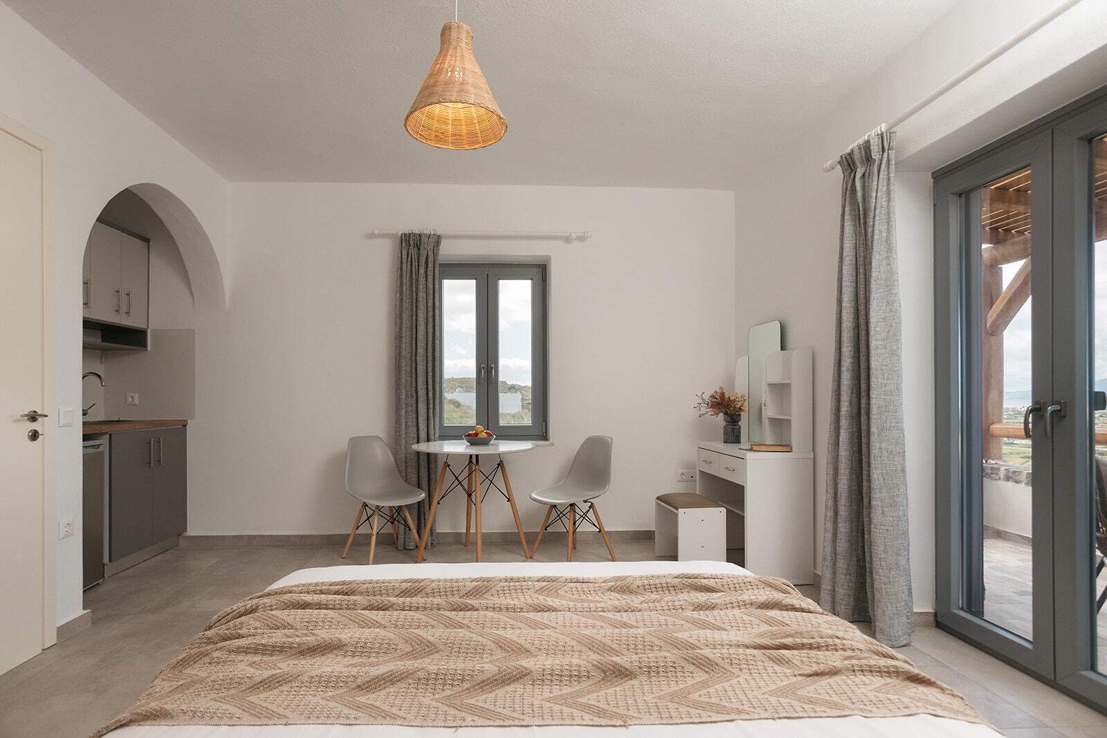 It can sleep a family of four, the spacious living room and the specially designed L shape couch can sleep comfortably even two adults when the big decorative pillows are removed. Located at the pool level it offers immediate access to the terrace and the pool, offering unrestricted panoramic views by just opening one door.