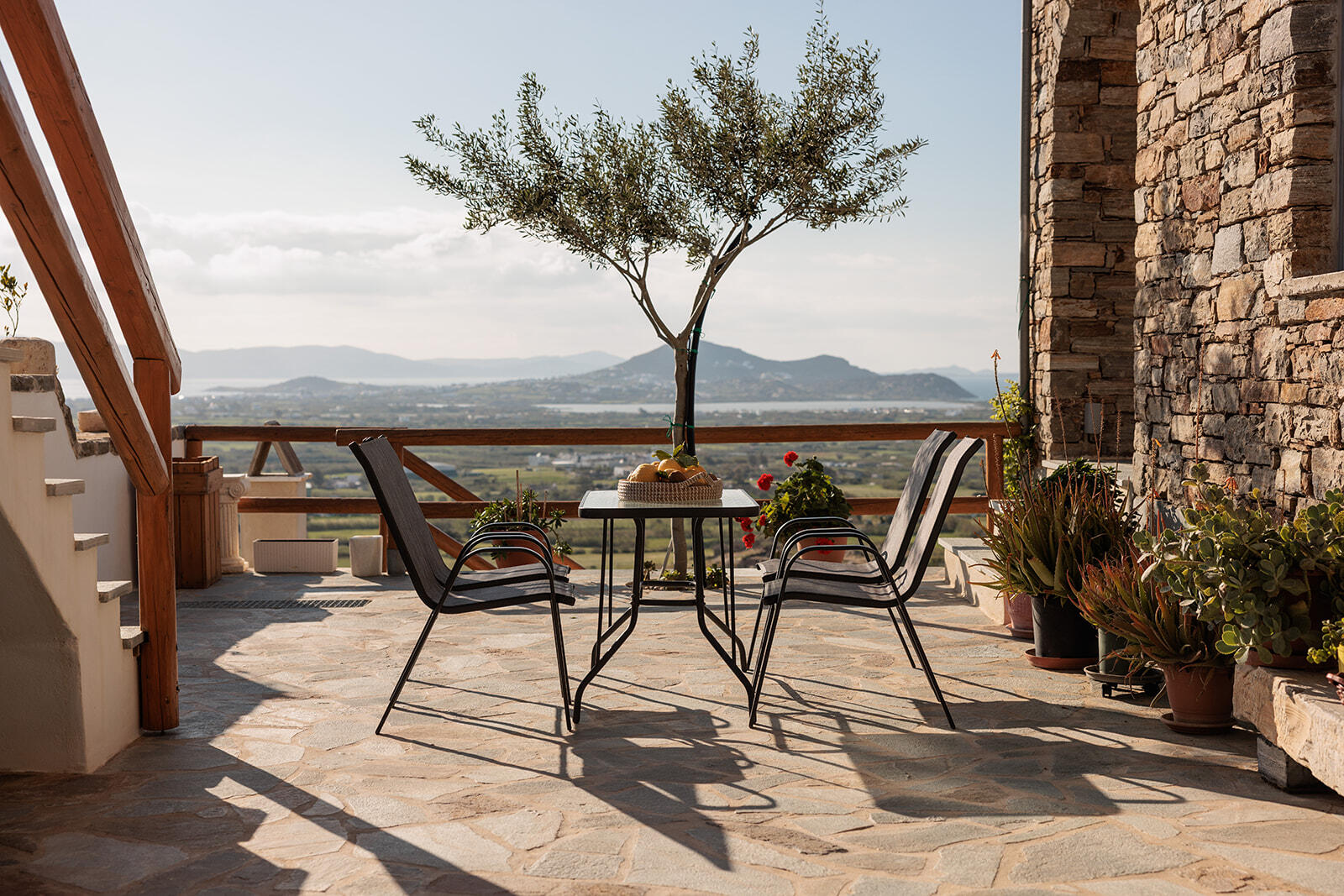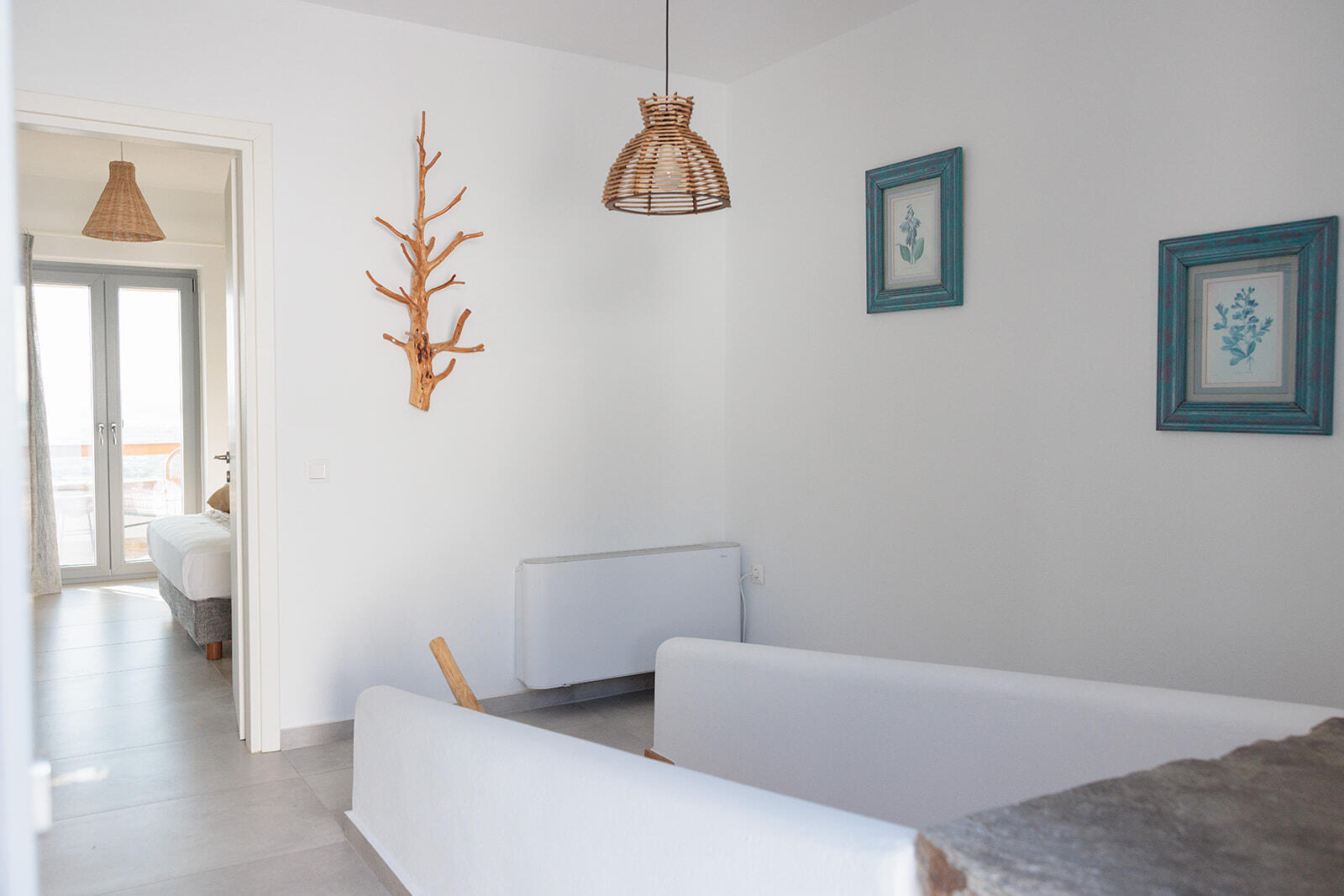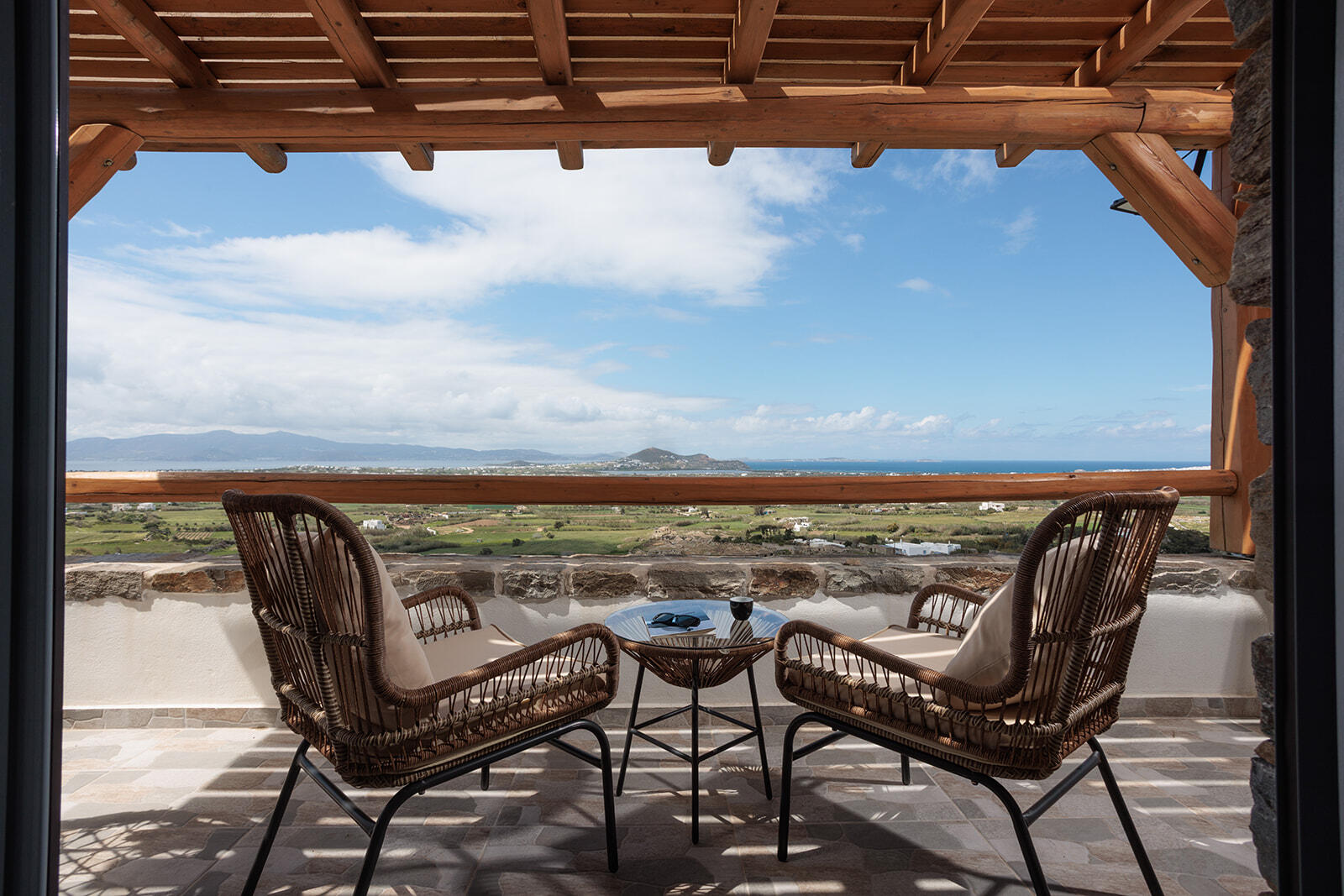 This apartment can sleep a family of five. It has one single and two double bedrooms, two bathrooms and a spacious living room. The apartment has a terrace at the main entrance and a balcony on the third floor with the most amazing views of the island.